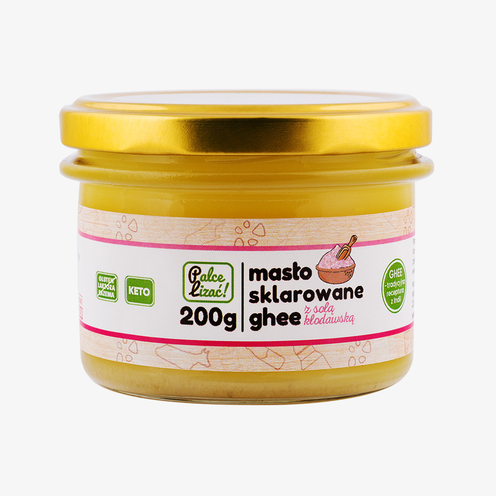 • Masło sklarowane ghee razem z solą kłodawską. Dobre do… wszystkiego! Sprawdzi się w gotowaniu, smażeniu, na chleb, do grillowania i pieczenia ryb, a nawet do deserów.
